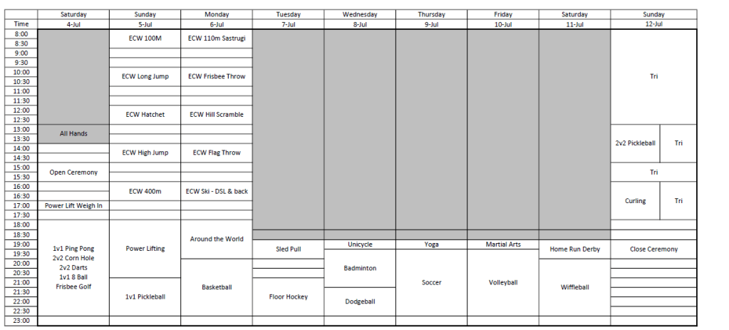 I have some awesome videos from some of the events – like the ECW hill climb (which was a tragic comedy), and badminton – which I need to edit before uploading.