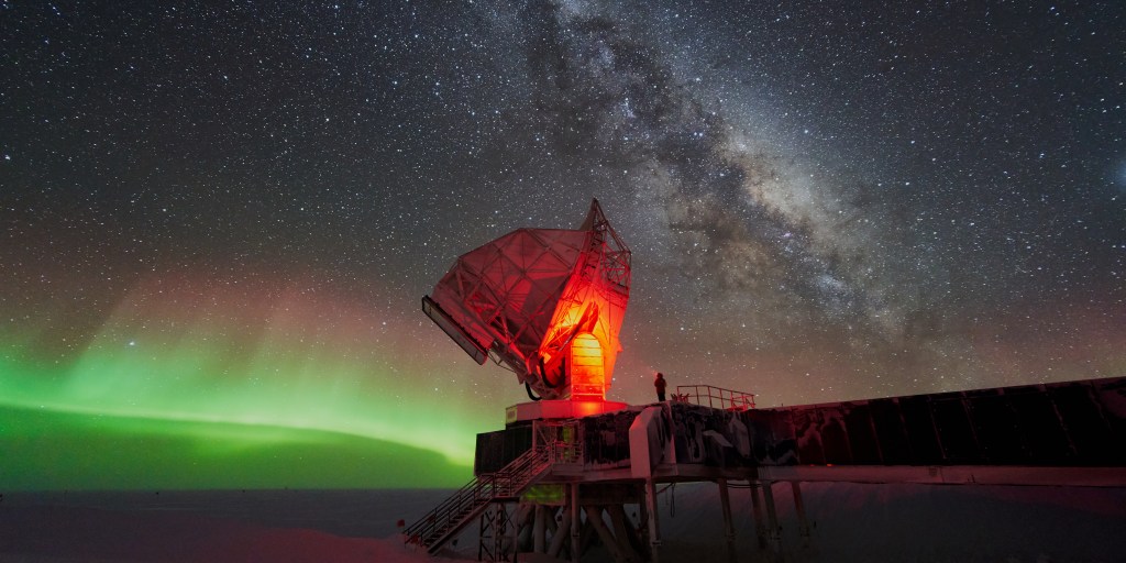 I didn’t take any pictures of that, but I do have this beautiful photo of the other SPT winterover, Geoff, in front of SPT, auroras and the Milky Way. Photo cred: Geoff Chen.