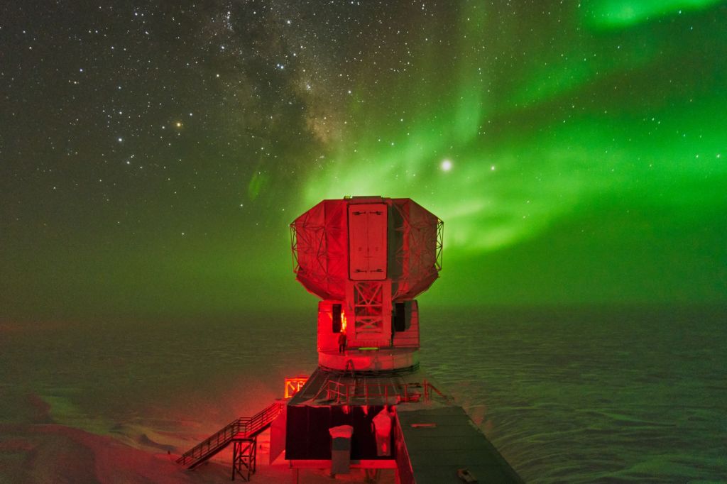 I don’t know if I’ve uploaded this photo yet, so here it is: a photo of me greasing the telescope under auroras and the Milky Way. Wind chill was around -140F that day… photo cred Geoff Chen