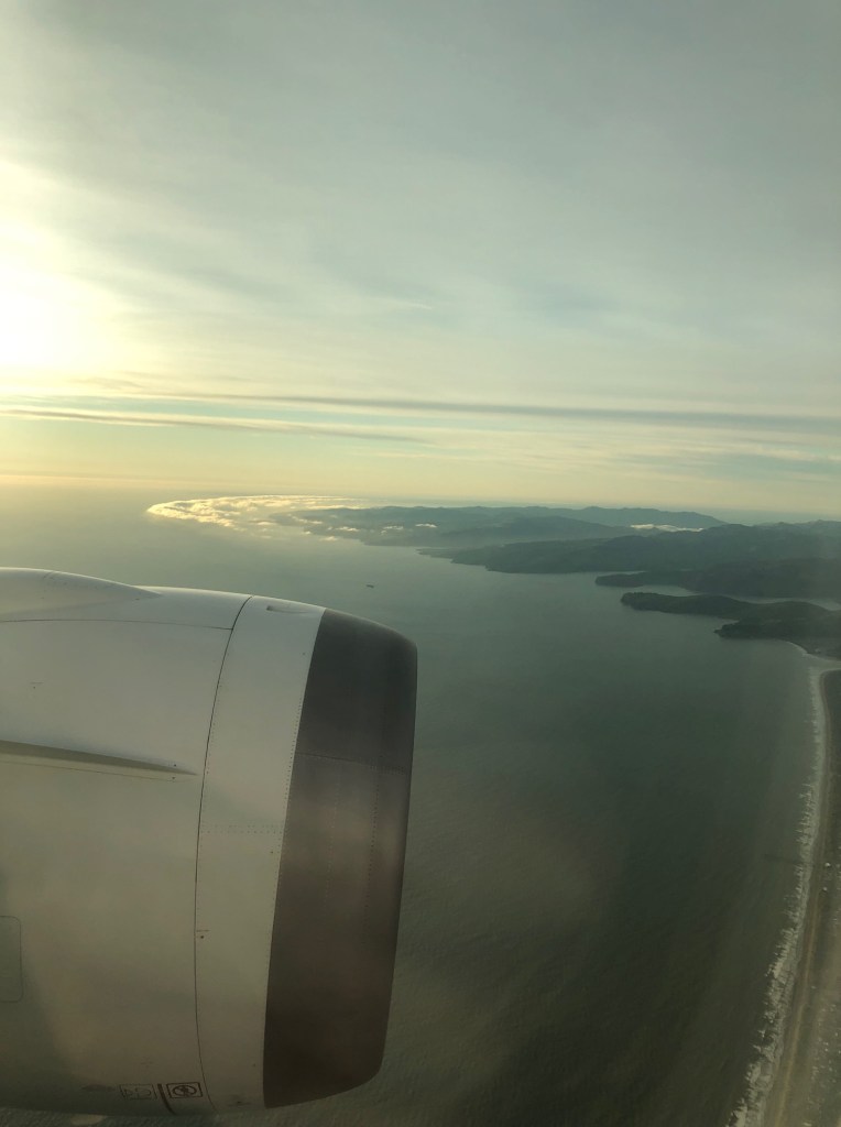 Another great sunrise over the South Pacific (though I didn’t get any good photos, the colors were really nice and separated and I got the full rainbow ROYGBIV)! We landed in Christchurch around 7am, and boy do these Kiwis take COVID protocol seriously! Everyone dealing with us or our luggage were wearing full gown PPE with masks and eye/hair coverings.