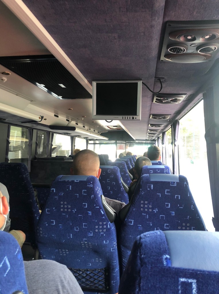 Our bus was also a quarantine bus – complete with bubble-boy enclosures for us “dirty” passengers.