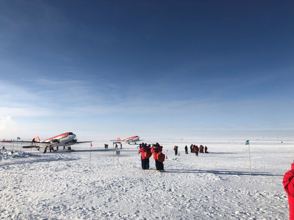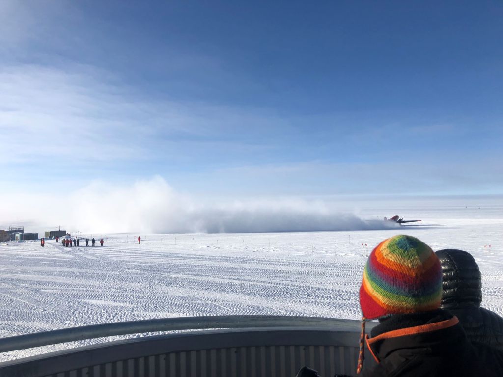It was (I think) unprecedented to have 2 USAP Baslers in the terminal at once. There was a big push to get the station closed before the bad weather arrives later this week. It was also surprising that 19 people (and their luggage!) could fly out on 2 Baslers ; they generally cap it at 6-8 people outbound from Pole due to the altitude. I heard thought that in colder weather they can take off more easily so being -45F today must have helped.