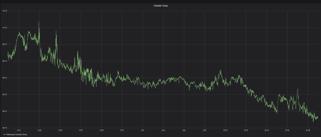 Temps are rapidly dropping; we’re now at -50F and rapidly approaching -60F (according to met, we should reach it next week).