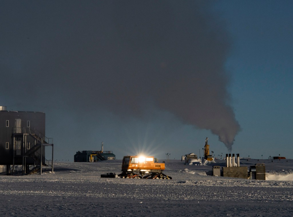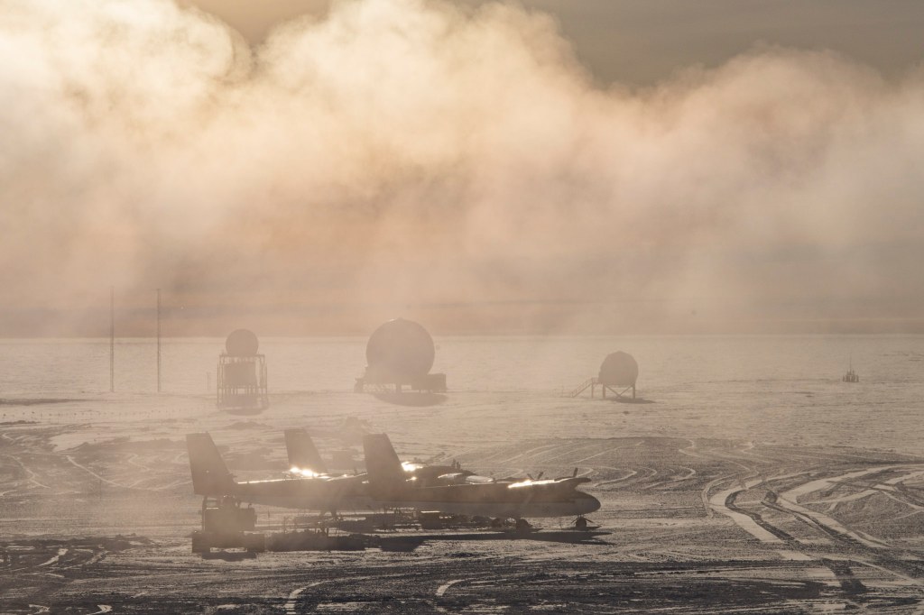 We hit -100F!! ok, ok, not really… but we did get to -100F with windchill! The combination of ~15knt winds and -65F air temp has a feel of below -100F brrr! We are well within the regime of <5min frostbite on any unexposed skin, and getting to more normal winter temperatures. The Sun is now only 8 degrees above the horizon and as the shadows get longer, the temps get colder.